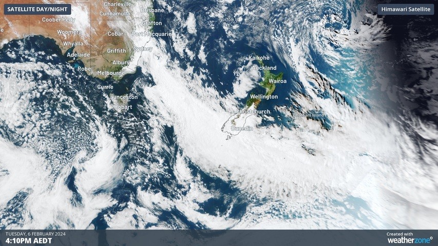 Image: Day/night satellite image captured at 4:10pm AEDT on Tuesday, February 6.