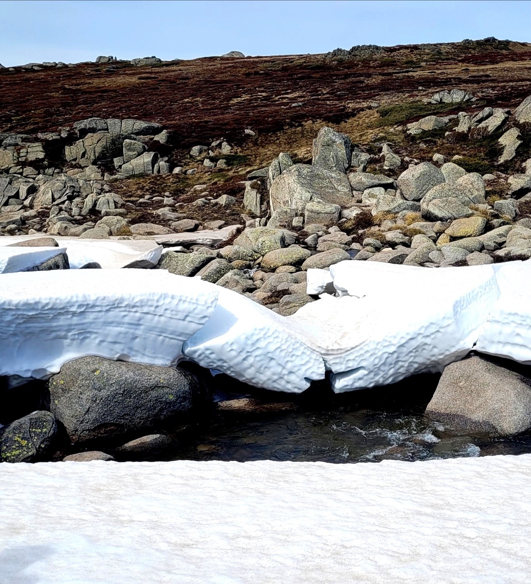 Even after a moderate snow season, snow patches persist into spring and early summer on the lee slopes of Australia’s highest peak Mt Kosciuszko and nearby summits. Anyone who has hiked Kosciuszko in summer (and 100,000 people do it year) could tell you that.
