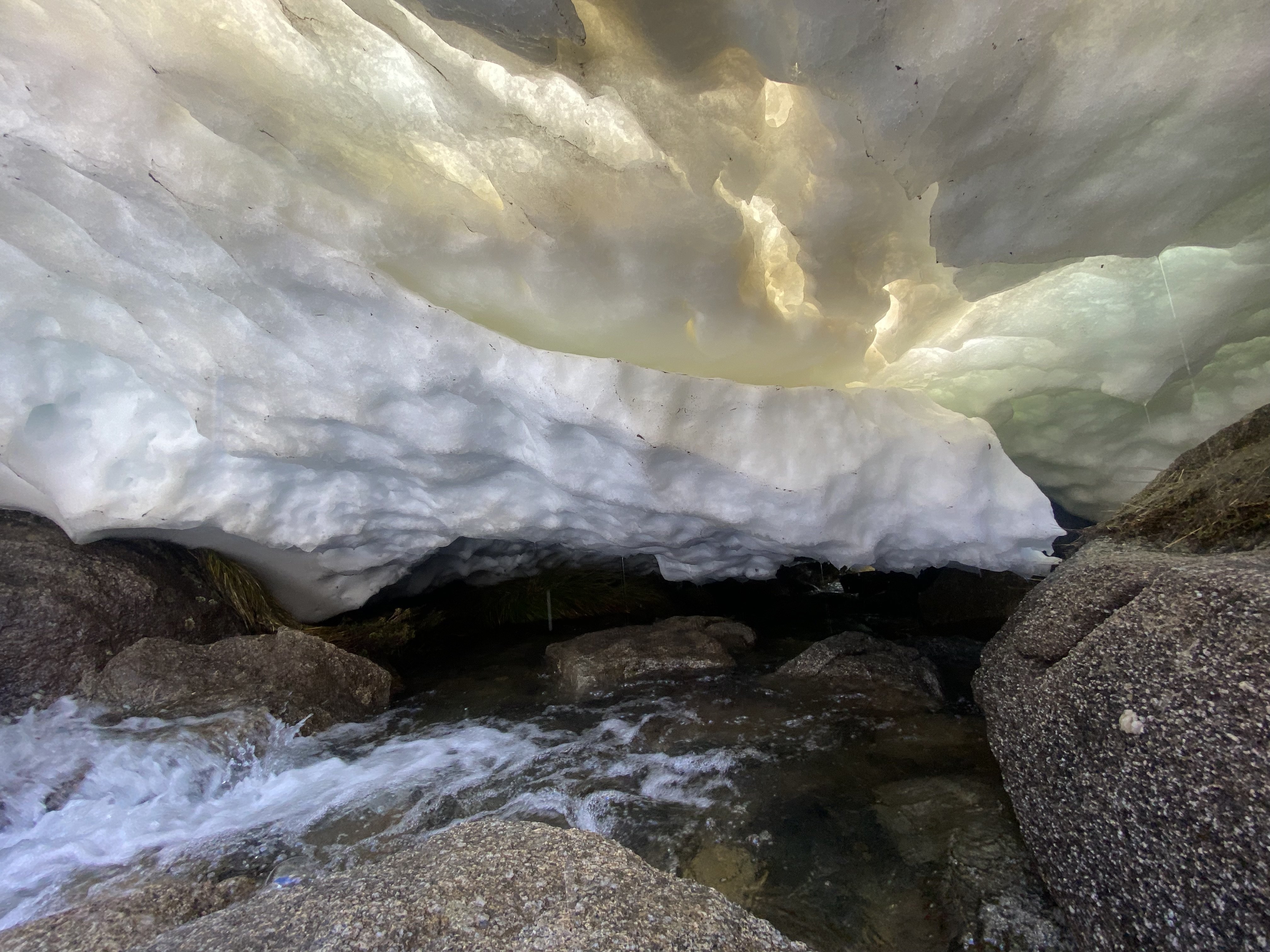 Image: Snowdrifts caving in under their own weight as the running waters of alpine creeks undercut them. Source: Phil Campbell.