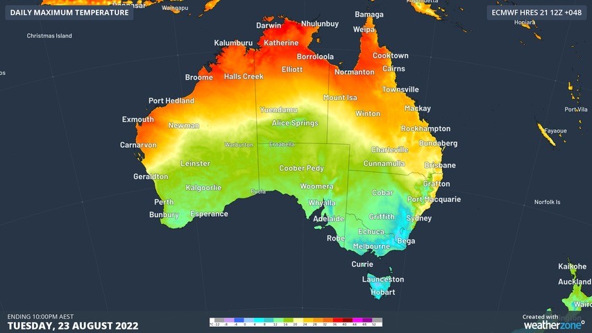 - Hobart should only warm to 10 to 11ºC on Tuesday, which is 3 to 4ºC below average.