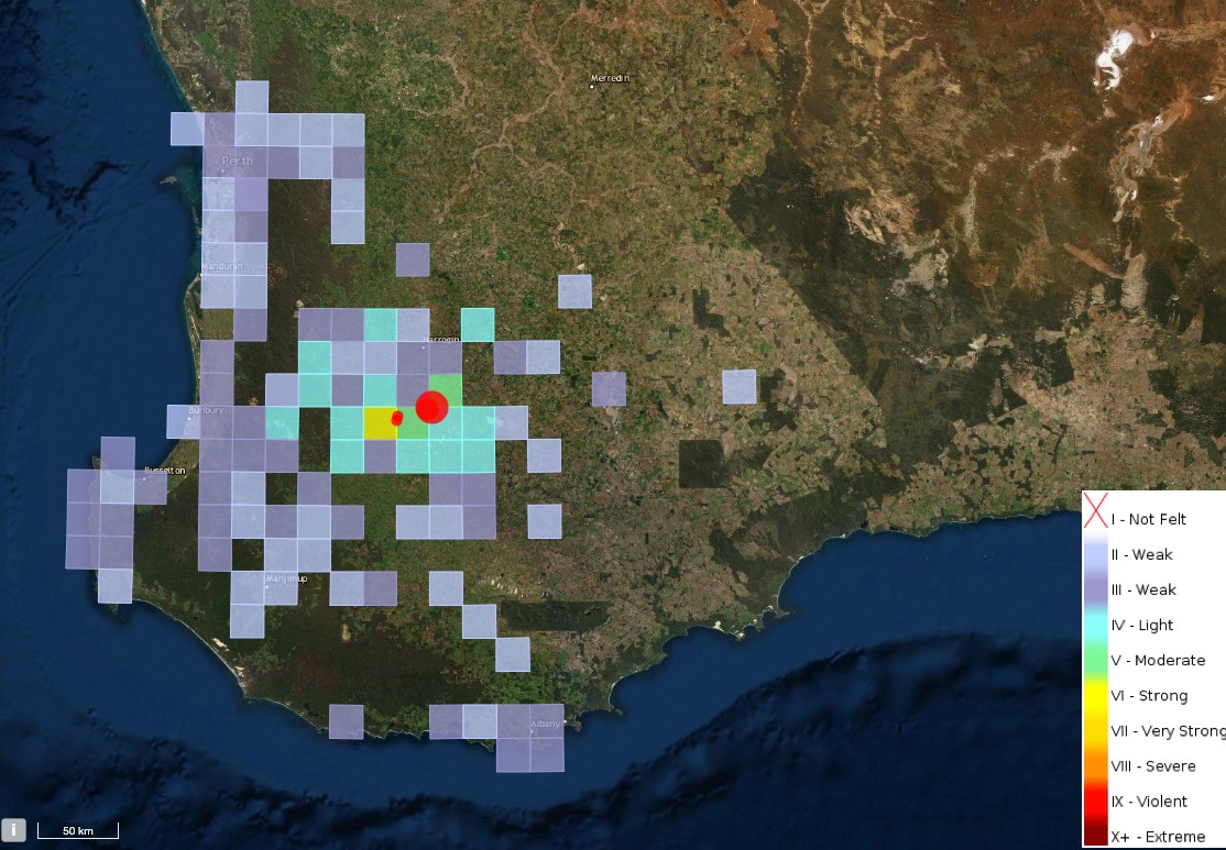 The earthquake was felt far and wide across the southwestern corner of WA, with reports of ground shaking coming in from Perth, Dwellingup, Bunbury, Busselton, Augusta, Albany, Katanning and Bridgetown. In the first hour after the initial earthquake, Geoscience Australia received more than 500 felt reports from the public.