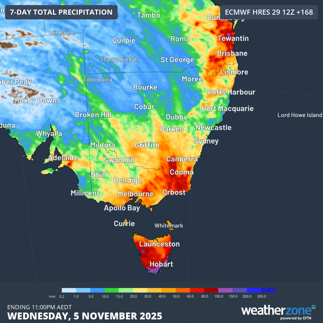To put the potential rainfall early next week in perspective, Melbourne has received 20mm of rain (or higher) on just three days in 2025 to date. It happened twice in January, and the most recent case was this week (Monday, October 27, which was the heaviest rain day of 2025 with 35.4mm).