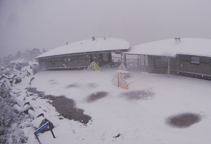 Here's the 2 pm snow cam image from the tiny club-run ski field of Mt Mawson, just under two hours northwest of Hobart.