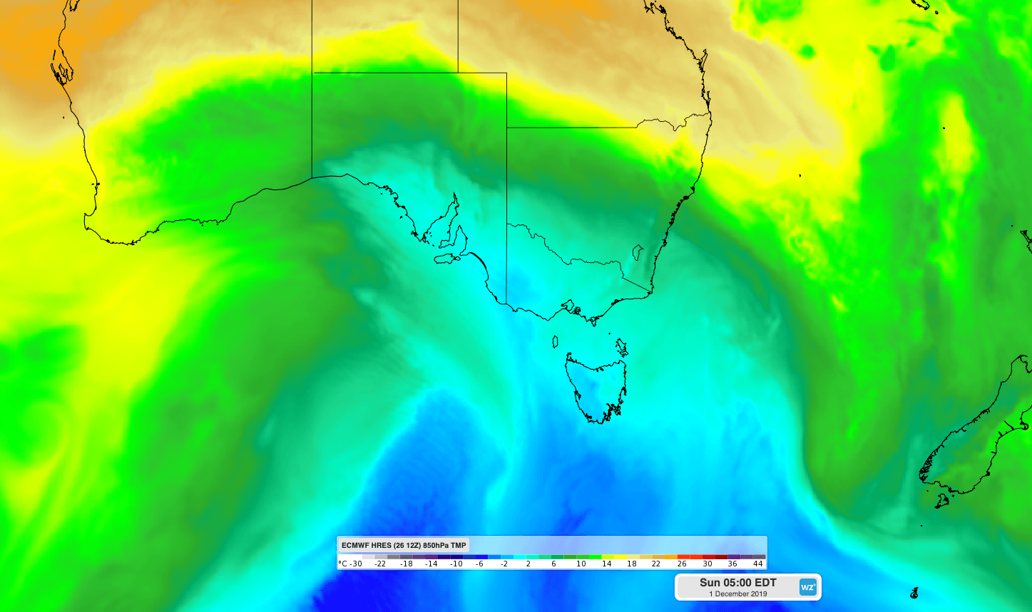 Image: The ECMWF-HRES computer model showing cold air moving over southeastern Australia on Sunday.