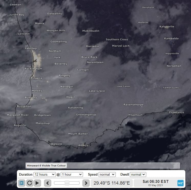 Image: Cloud over southwest WA on Saturday morning. Source: Himawari-8 Satellite