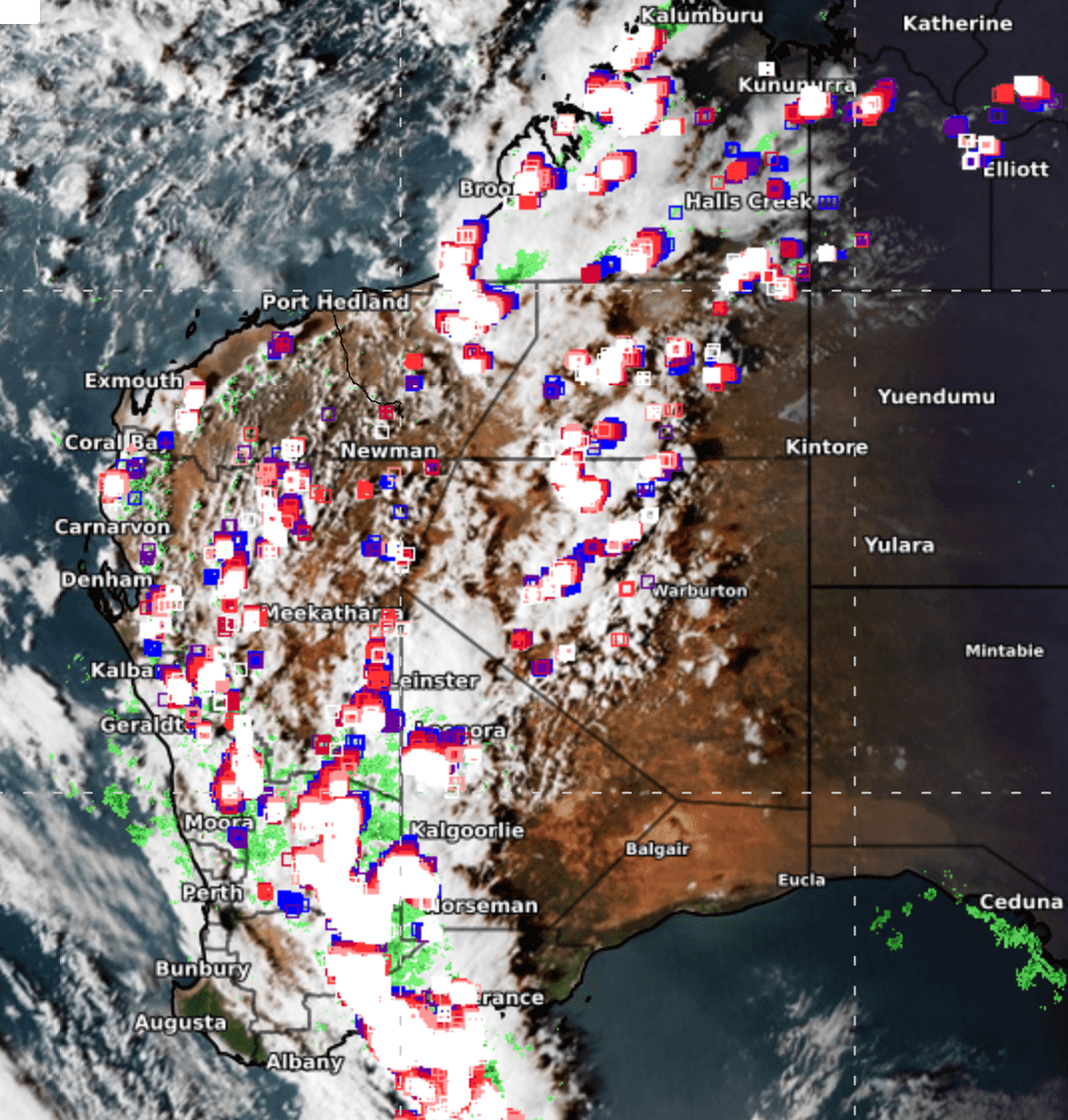 More than 800,000 lightning strikes hit WA yesterday afternoon and evening as severe thunderstorms developed over a broad area of the state. Abundant tropical moisture fed into a trough which extended well south into the state. The highest density of strikes was registered over southwestern areas of WA, with about 630,000 lightning strikes within 800km of Southern Cross in the Central Wheat Belt district.