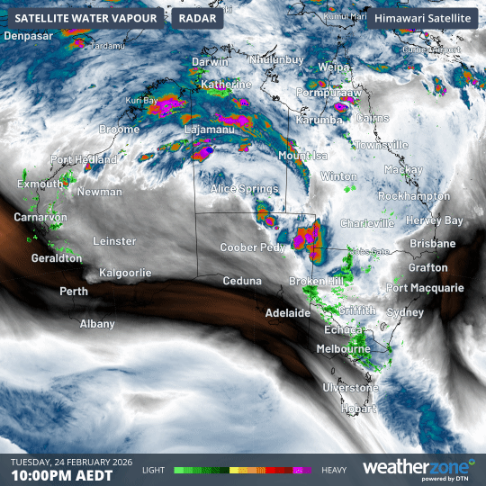 Image: Loop indicating atmospheric water vapour over Australia in the 12 hours to 10 am (AEDT) on Wednesday, February 25, 2026.