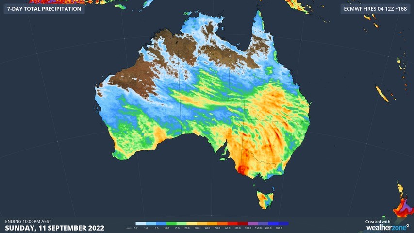 Image: ECMWF weekly rainfall forecast to 10pm Sunday, September 11