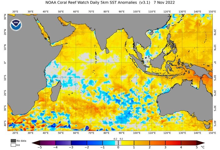 This weakening of the IOD index over the past few weeks is a clear sign that the 2022 negative IOD episode is nearing its end, despite the atmosphere above the Indian Ocean remaining in a negative IOD-like state. All forecast models surveyed by the Bureau predict that the IOD will be in a neutral state by December.