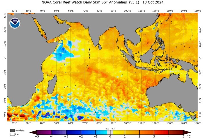 Image: Sea surface temperature anomalies in the IOD monitoring regions on October 13, 2024. Source: NOAA