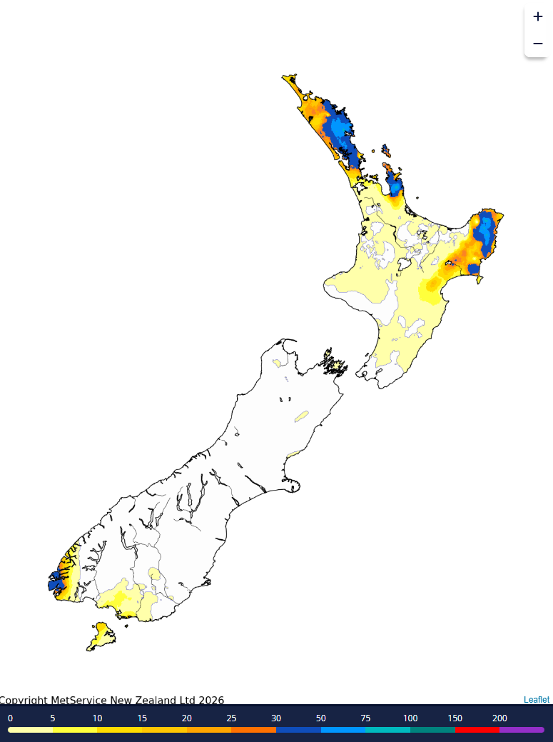 Warnings for strong winds, heavy rain and heavy swell are also declared all over the northern half of the country as can be observed at: https://www.metservice.com/warnings/home.