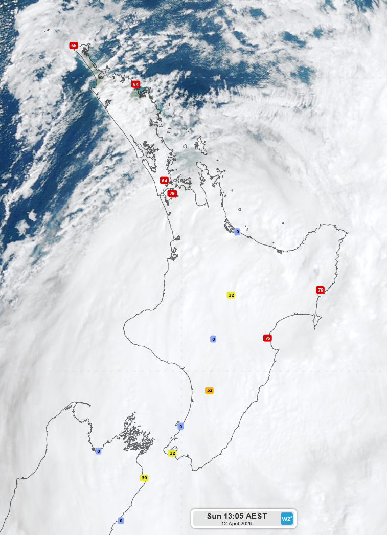 Around 2pm Sunday local time (midday AEST), Vaianu made landfall over the Bay of Plenty bringing wind gusts above 80km/h for much of the north and east coasts of the North Island from early morning. Gusts up to 130km/h are expected in the late afternoon and evening as Vaianu continues to move over land.