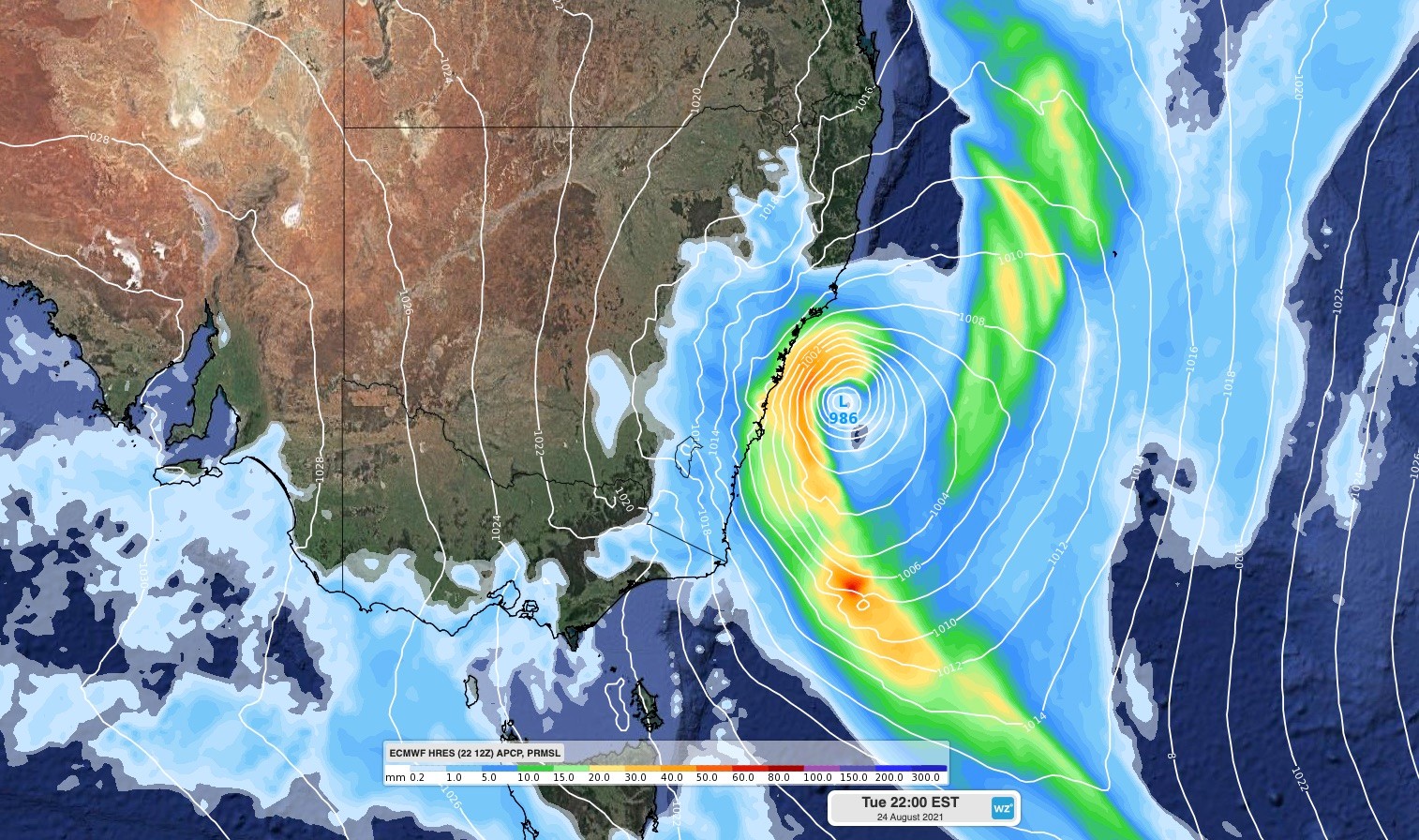 After traversing eastern Australia, the cold front will then move over the Tasman Sea on Tuesday and cause a low pressure system to rapidly deepen near the central coast of NSW.