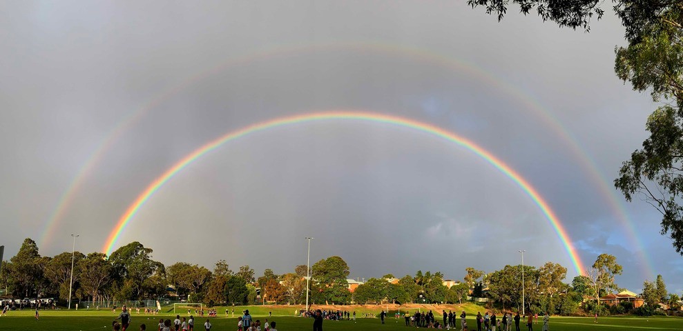 Image: At least there were rainbows at some of the local sport fixtures that managed to go ahead this month. This one was seen from Killarney Vale on May 20. Source: Supplied