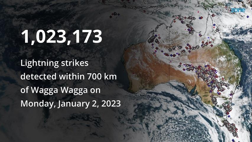 Over one million lightning strikes have been recorded within 700km of Wagga Wagga as widespread storms spread through Victoria and NSW on Monday.