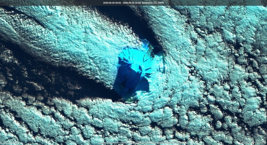 Image: Composite satellite image of the Mawson Peak volcanic summit on Big Ben, Heard Island, Australia - 25 May 2023. Source: Modified Copernicus Sentinel data [2023], processed by Pierre Markuse