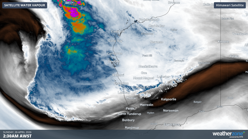 Image: Animation of water vapour imagery on 26 April 2026. Source: Weatherzone.