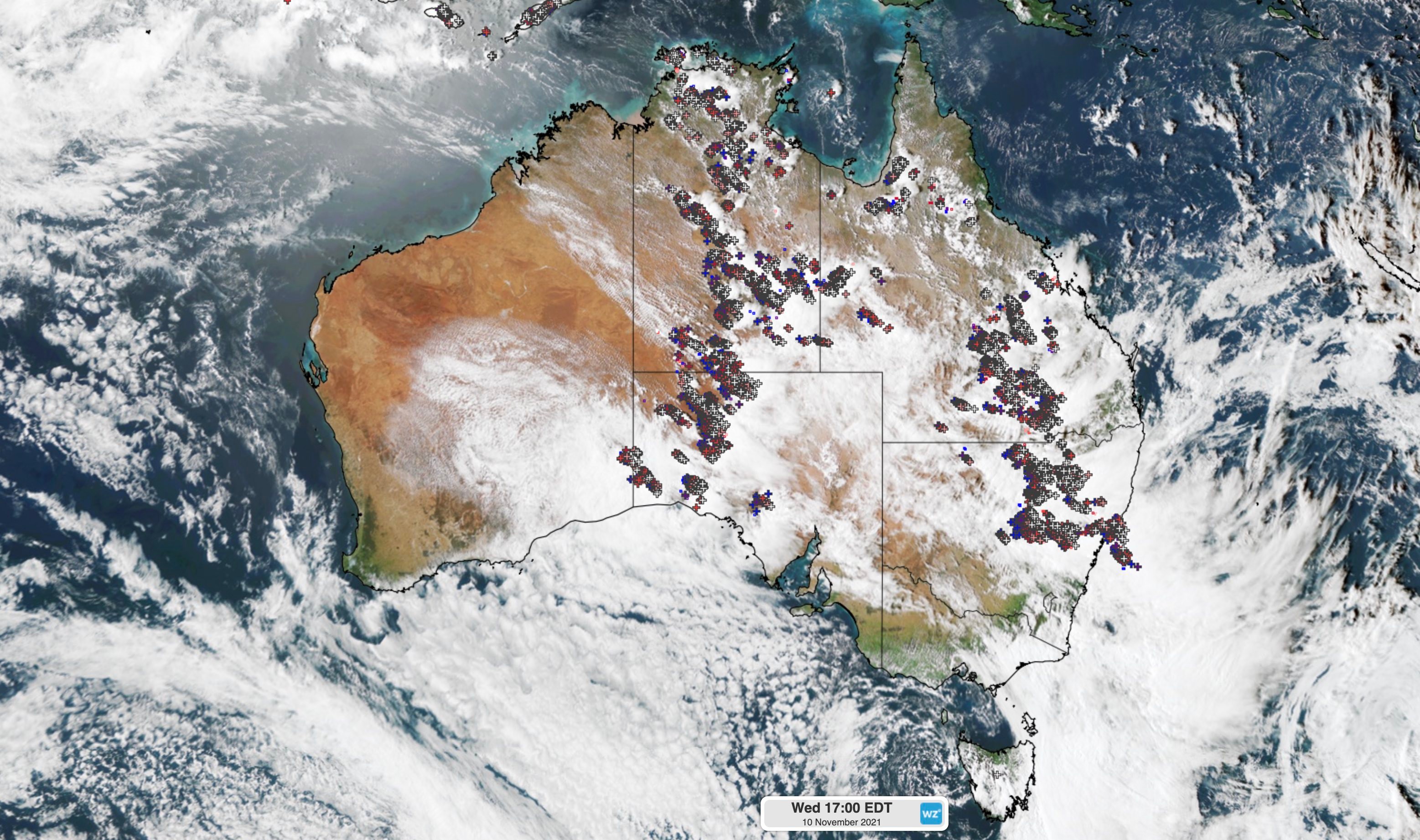 The clip above reveals how widespread and persistent thunderstorms were across Australia on Wednesday into Thursday morning.