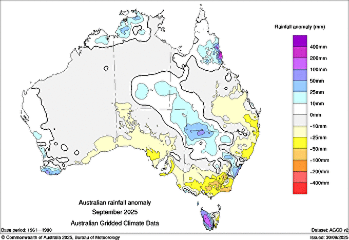 Image: Rainfall anomalies for September 2025, Bureau of Meteorology