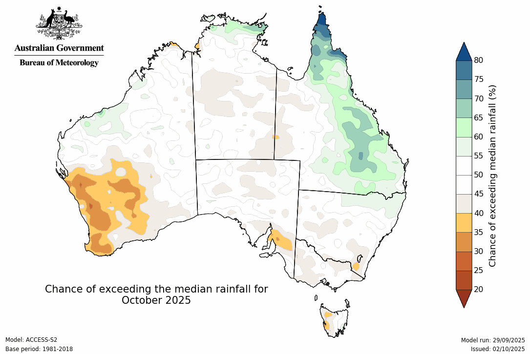 Image: Forecast rainfall anomaly for October 2025, Bureau of Meteorology