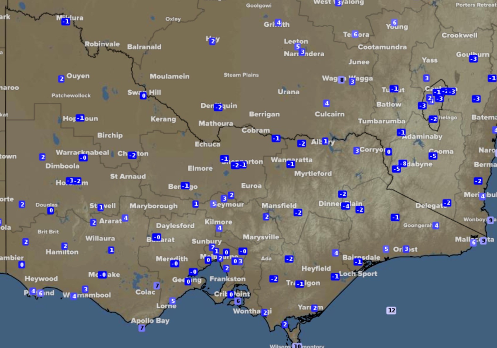 As with any temperatures below two degrees, widespread frosts were reported across Victoria, with some severe frosts occurring in the North East district.