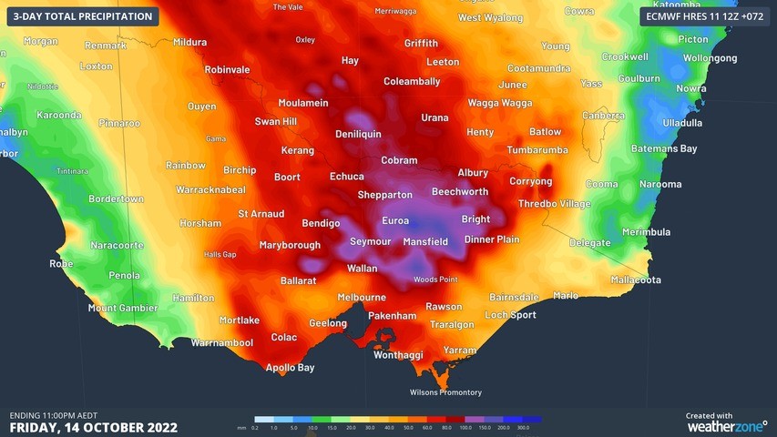 This system could deliver around 100 to 200 mm of rain to parts of central and northeast Victoria, which is likely to cause flooding, especially in areas that have seen recent rainfall and have already wet catchments.