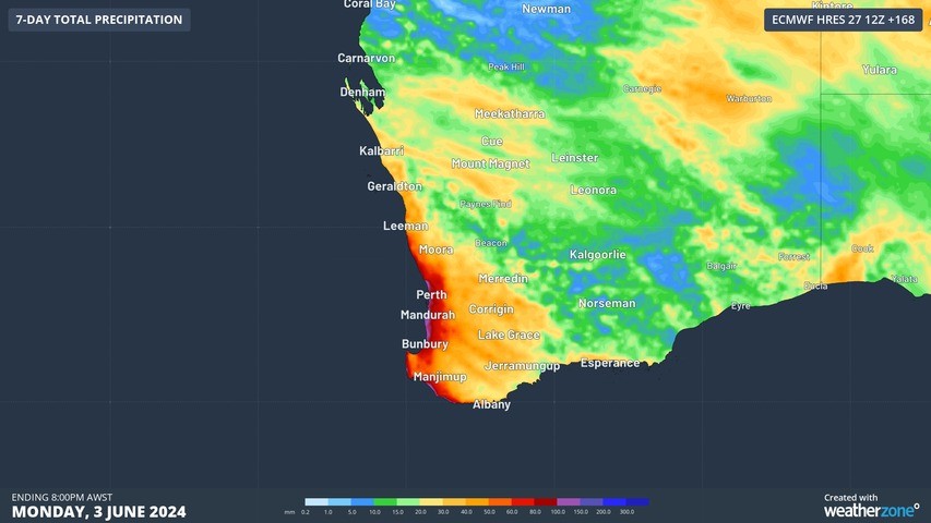 Perth has the potential to pick up more about 50 mm over the coming week, which would be twice the rain it has seen in the past seven months.