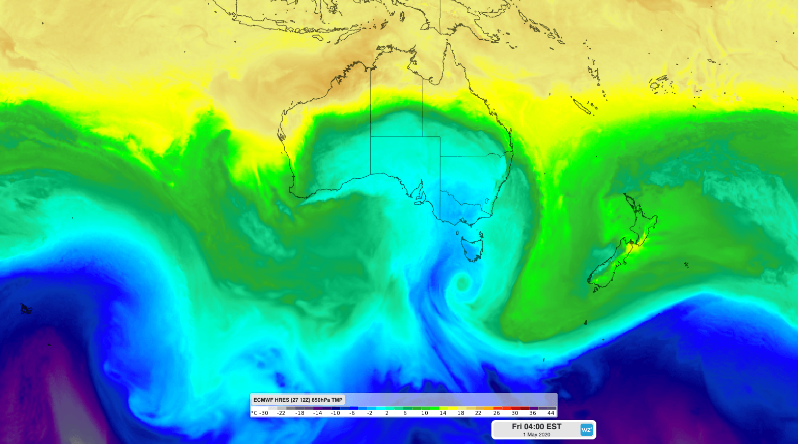 Image: Cold air over southern and southeastern Australia on Friday morning from the ECMWF-HRES model.