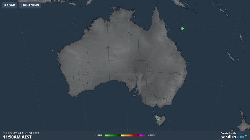 If you squint your eyes you can make out some light showers in northwest Tasmania while there's also a speck or two of rain in the Coral Sea off the Queensland coast.