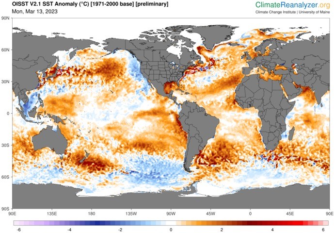 This year has already been able to rival the oceanic warmth of 2016, despite being under the cooling influence of a waning La Niña. With some forecast models suggesting that El Niño may develop later in the year, this might not be the last record-challenging warmth in out planet’s oceans during 2023.