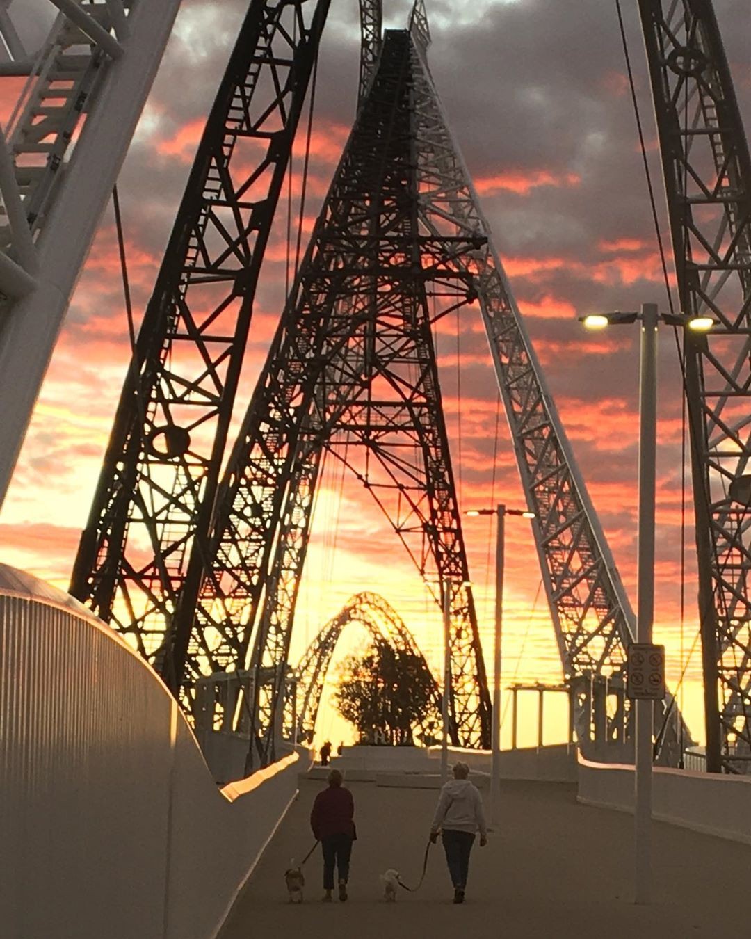 Image: Sunrise on the Matagarup Bridge on Wednesday morning. Source: @justtransfersperth / Instagram