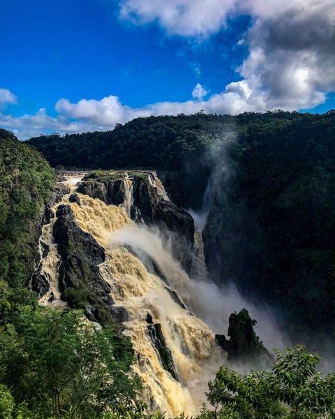 The Barron Falls in the Cairns hinterland were putting on a spectacular show on Tuesday morning following several days of solid rain. Cairns Airport collected 303 mm in the past five days.
