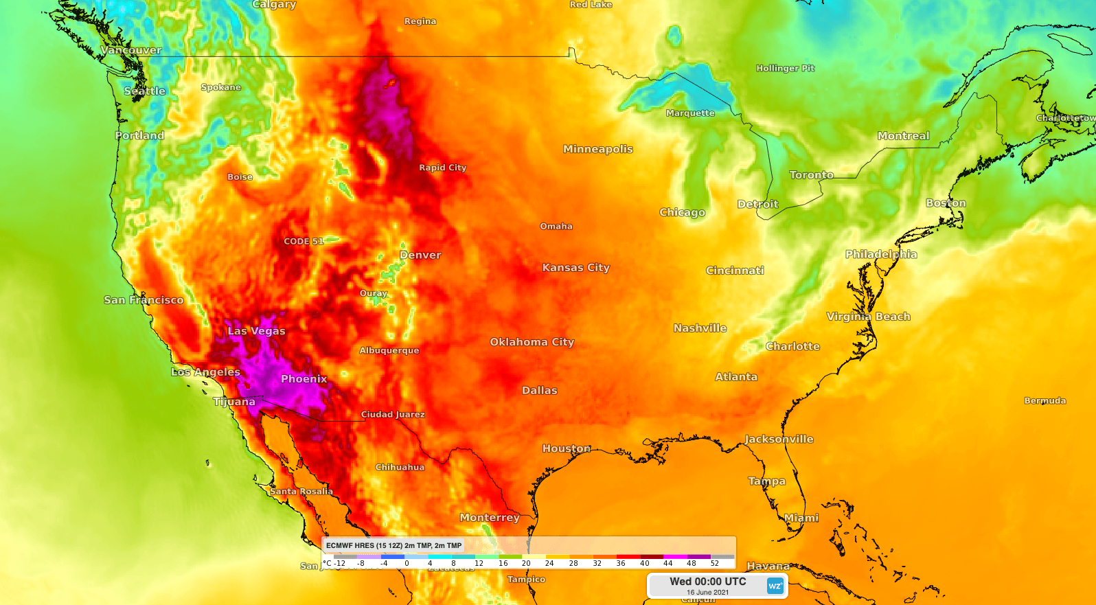 This aptly named place hit 51.1ºC on Tuesday and is forecast to reach 52-53ºC between Wednesday and Saturday. This could challenge the site's June record of 53.9ºC, although its all-time record of 56.7ºC (July 10, 1913) - which is also the current official world record – looks safe for now.