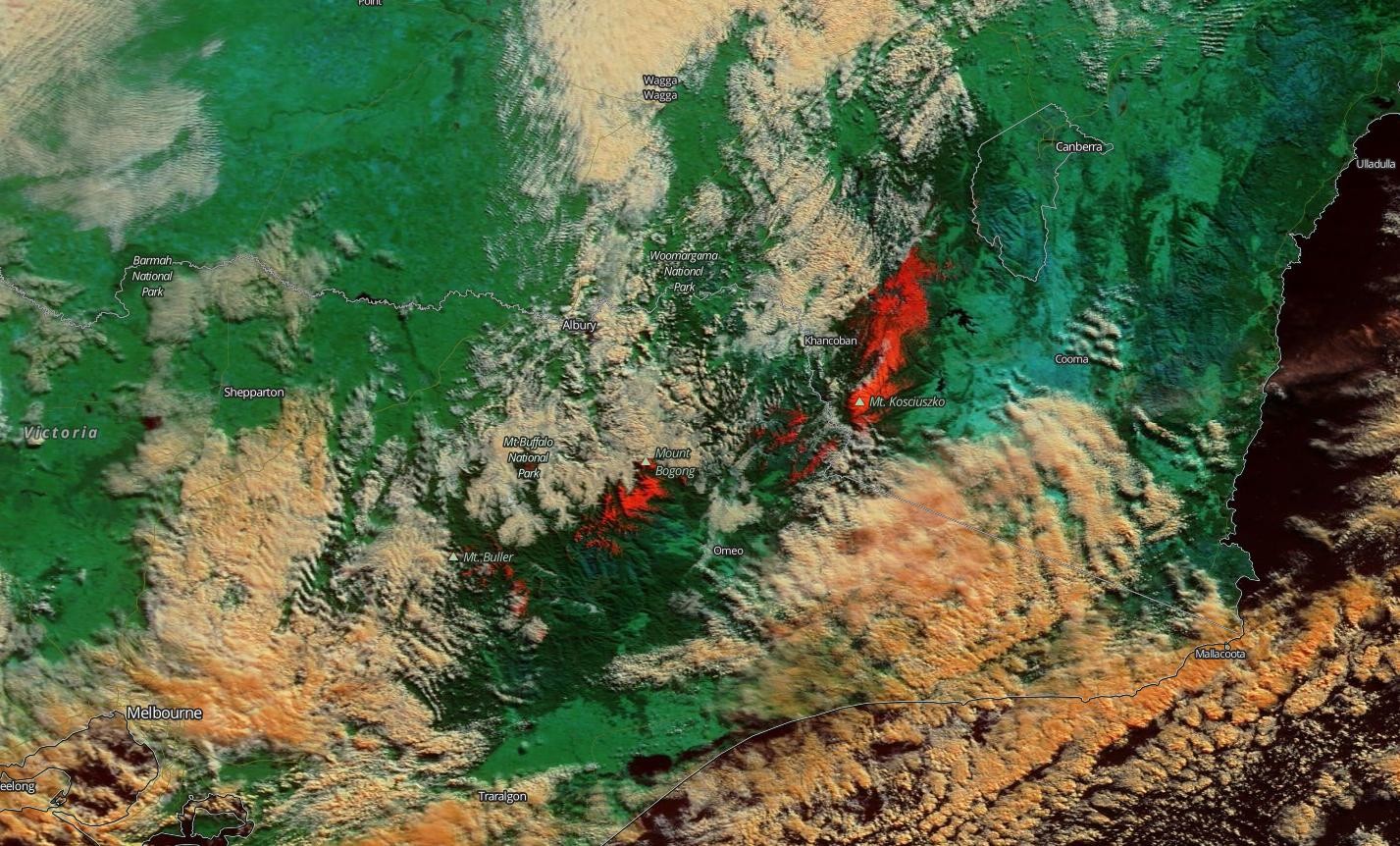 Image: False-colour satellite image showing snow cover in red on 29th June, 2020. Source: NASA Worldview