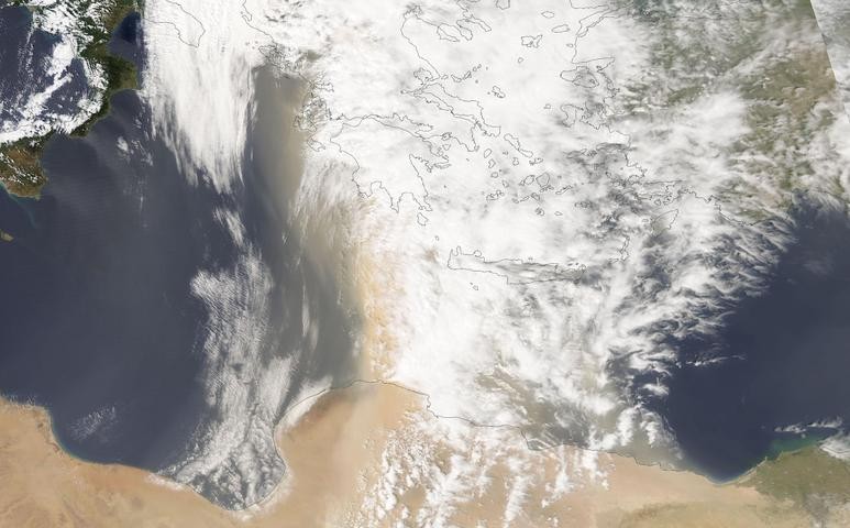Satellites capture huge dust storm crossing Mediterranean Sea