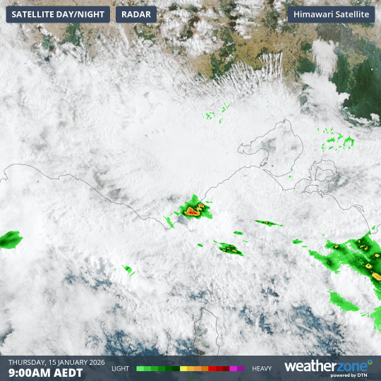 Image: Thunderstorm development in the SE corner of mainland Australia on the afternoon of Thursday, January 15, 2026.