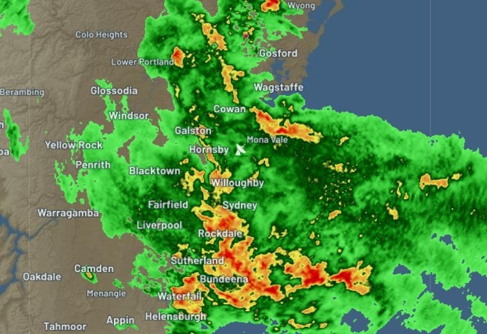 Severe thunderstorms were detected on the weather radar near Parramatta, Sutherland, Sydney City, Sydney Airport, Sydney Olympic Park and the Sydney Harbour Bridge.