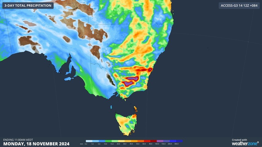 Image: Accumulated precipitation for the 3 days leading up to Monday, November 18, according to access-G