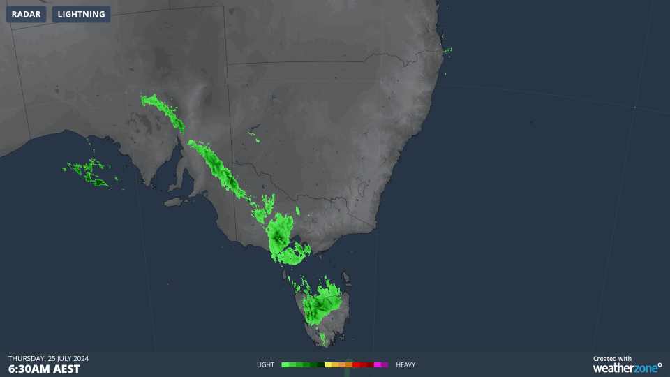 The front was preceded overnight by a band of rain which crossed southern parts of SA, northern and western Tas, and the western half of Vic.