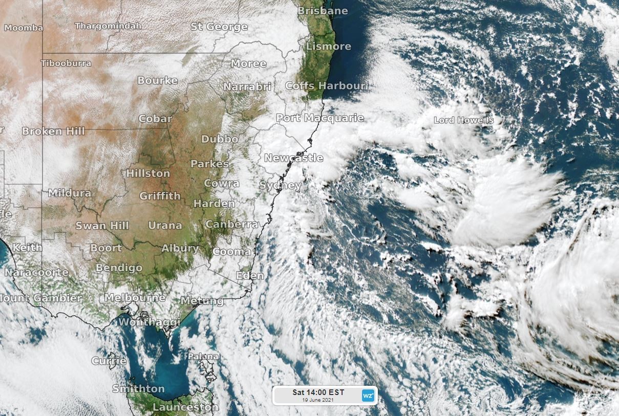 Image: The deep Tasman Low responsible for the wild weather in much of coastal NSW on Saturday, using the Himawari-8 satellite.