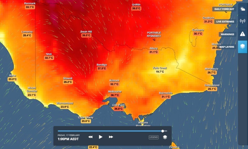 Image: Live 1:00pm temperatures in Victoria at https://www.weatherzone.com.au/vic