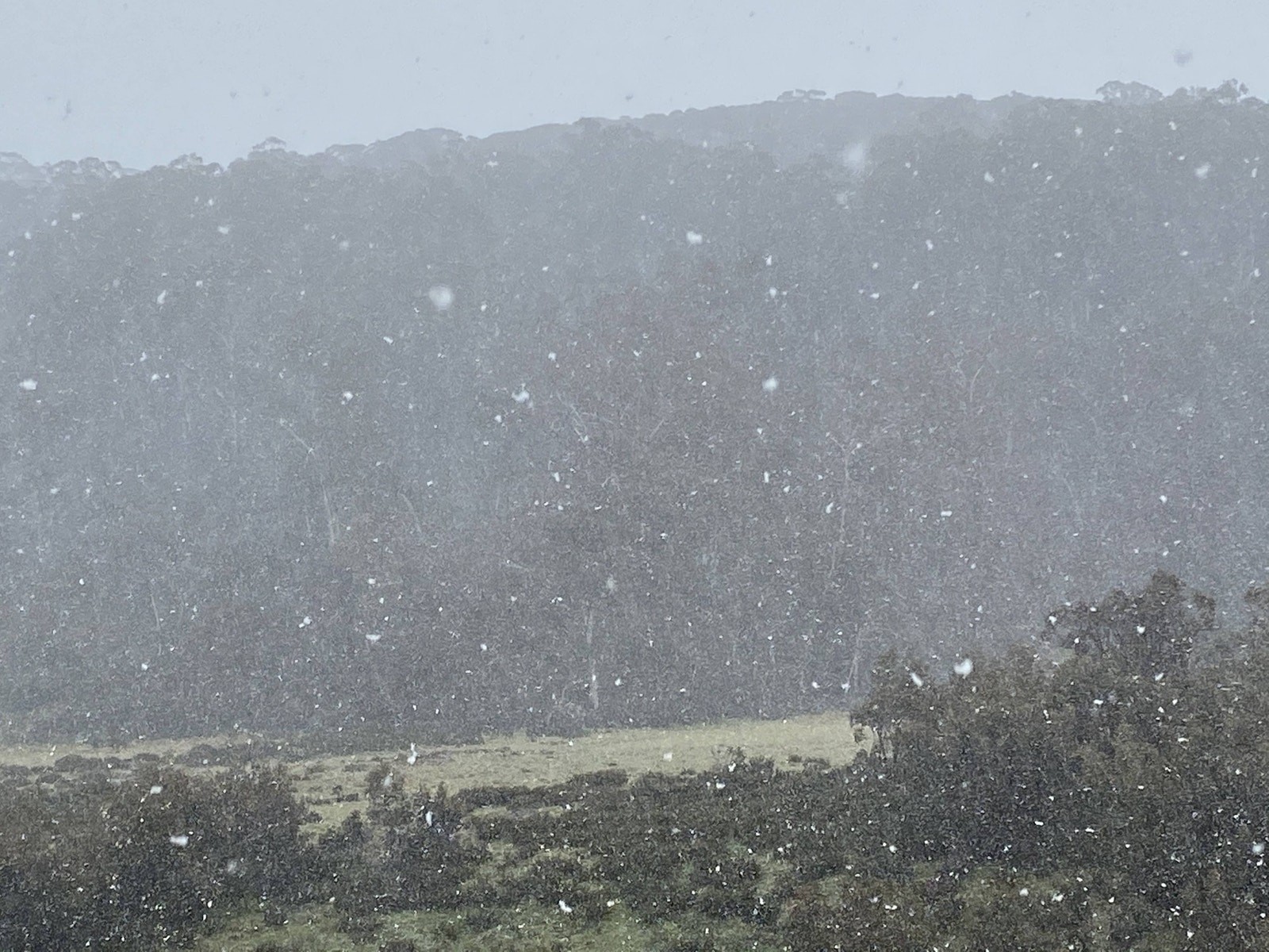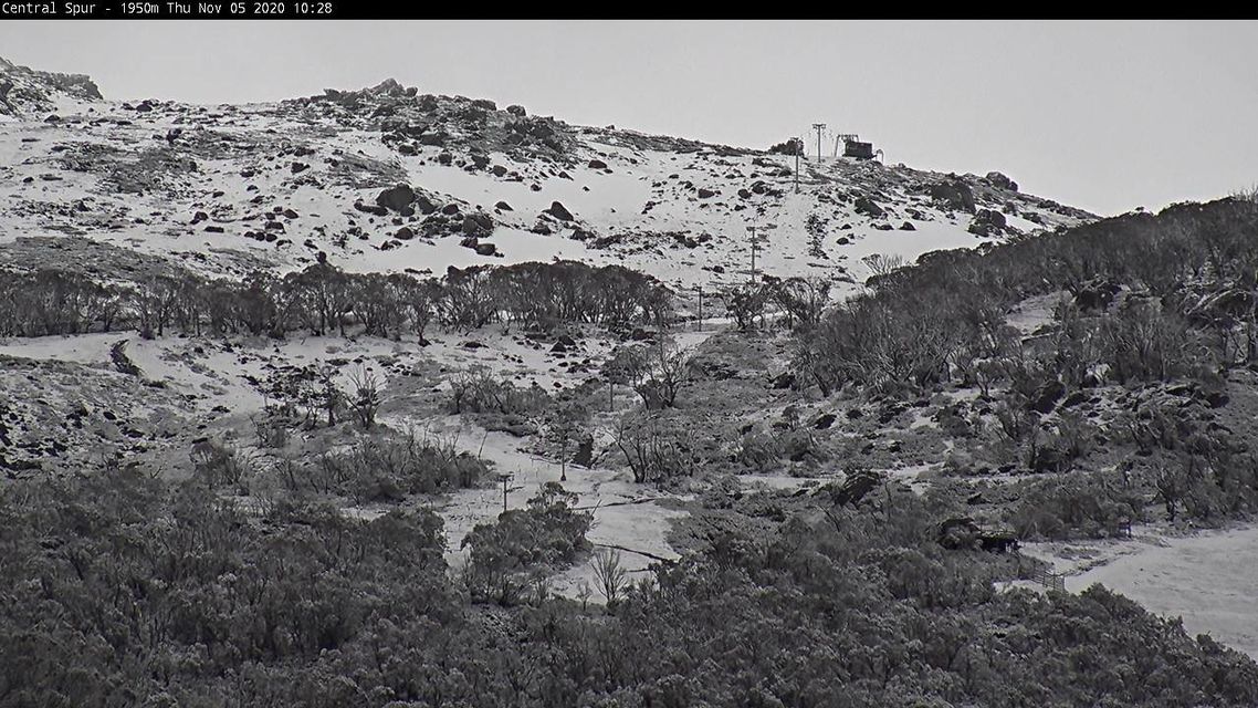 Snow fell in the NSW Snowy Mountains early on Thursday morning, coating the ground with a couple of centimetres of white stuff above about 1400 metres, as cold southerly winds in the wake of a front swept over the region.