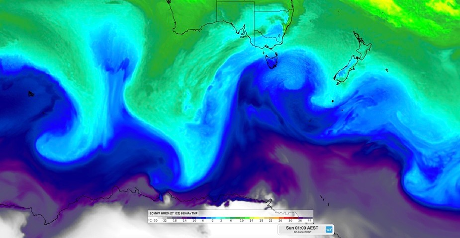 A pool of polar air from the ice sheets of Antarctica will surge across the Southern Ocean later this week and slam into Tasmania on the weekend.