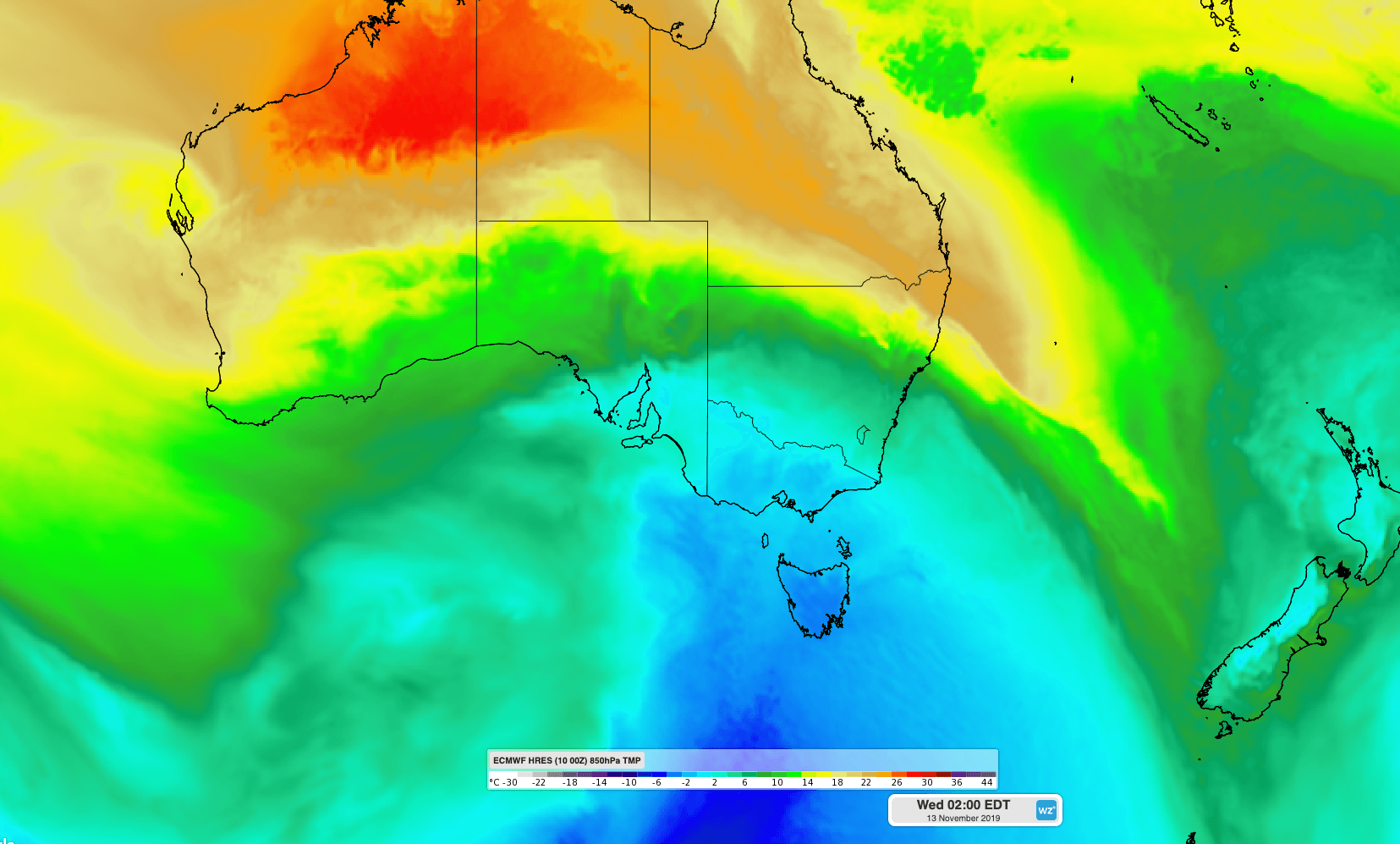 Image: Cold air passing over southeastern Australia on Tuesday night.