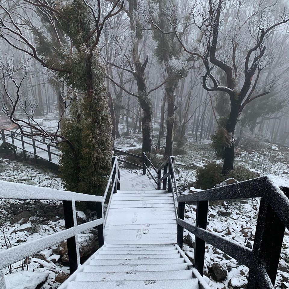 There were reports of light snow showers in Guyra and Ben Lomond and a dusting of snow covered the ground at Mount Kaputar, to the east of Narrabri.