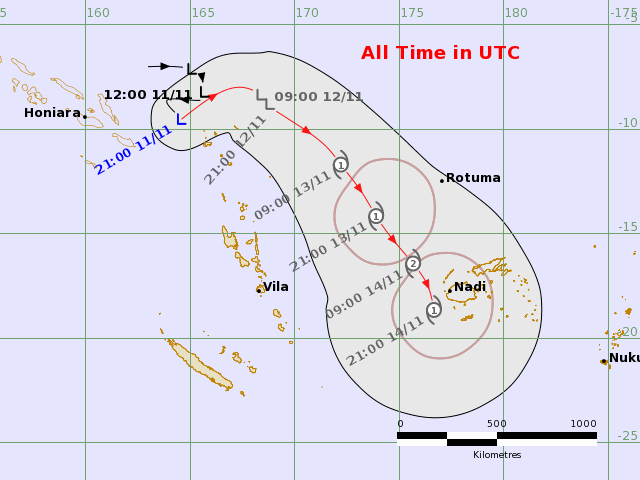 Figure 1: A forecast track map for the tropical low issued by the Fiji Meteorological Service on Sunday.