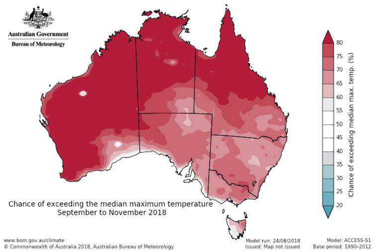 So far, 2018 has been very warm and exceptionally dry over large parts of mainland Australia. The Bureau of Meteorology's climate outlook for spring , released today, shows that significant widespread relief is unlikely.