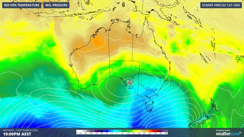 Early spring is typically a time for variable temperatures in southern parts of Australia as hot continental air masses interact with much colder pools of air moving up from the south.