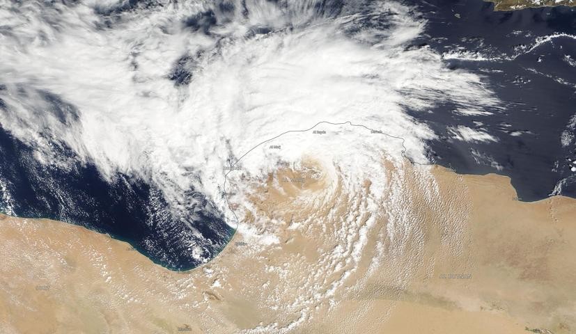 The satellite images below show evidence of flooding in northeast Libya on September 11, in the wake of the low pressure system.