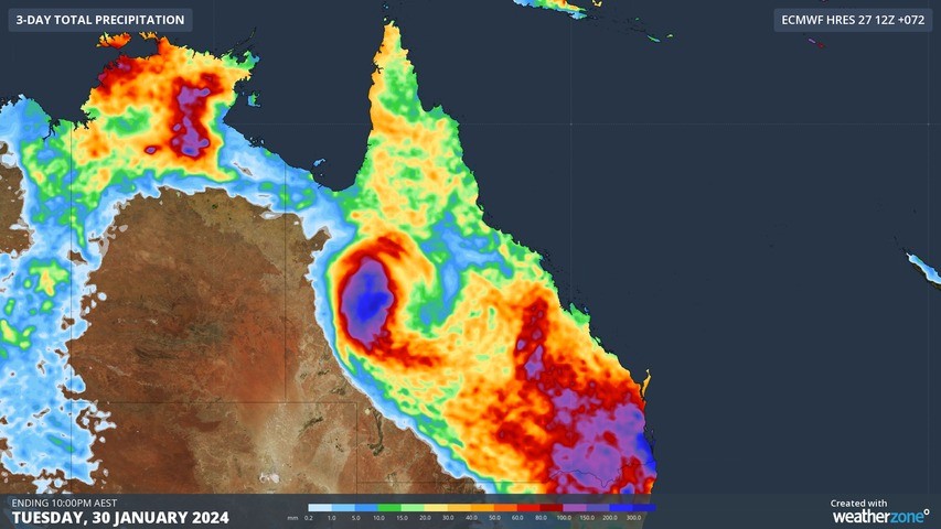 Rollingstone saw more than a month's worth of rain and their wettest January day in 135 years of rainfall records, with 131mm falling in the gauge, largely falling overnight between 8pm and 3am. The heaviest falls in the state were found nearby at Glenora Road, just south of Emerald, recording a 243mm deluge from nearly persistent storms overnight.